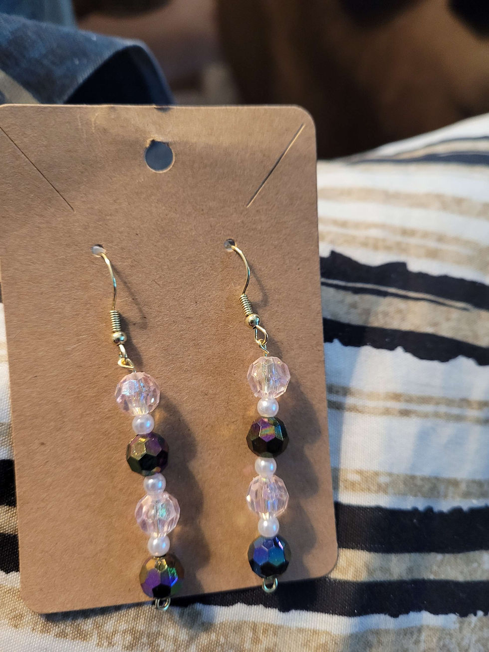 Brown, Blue, and Clear Earrings
